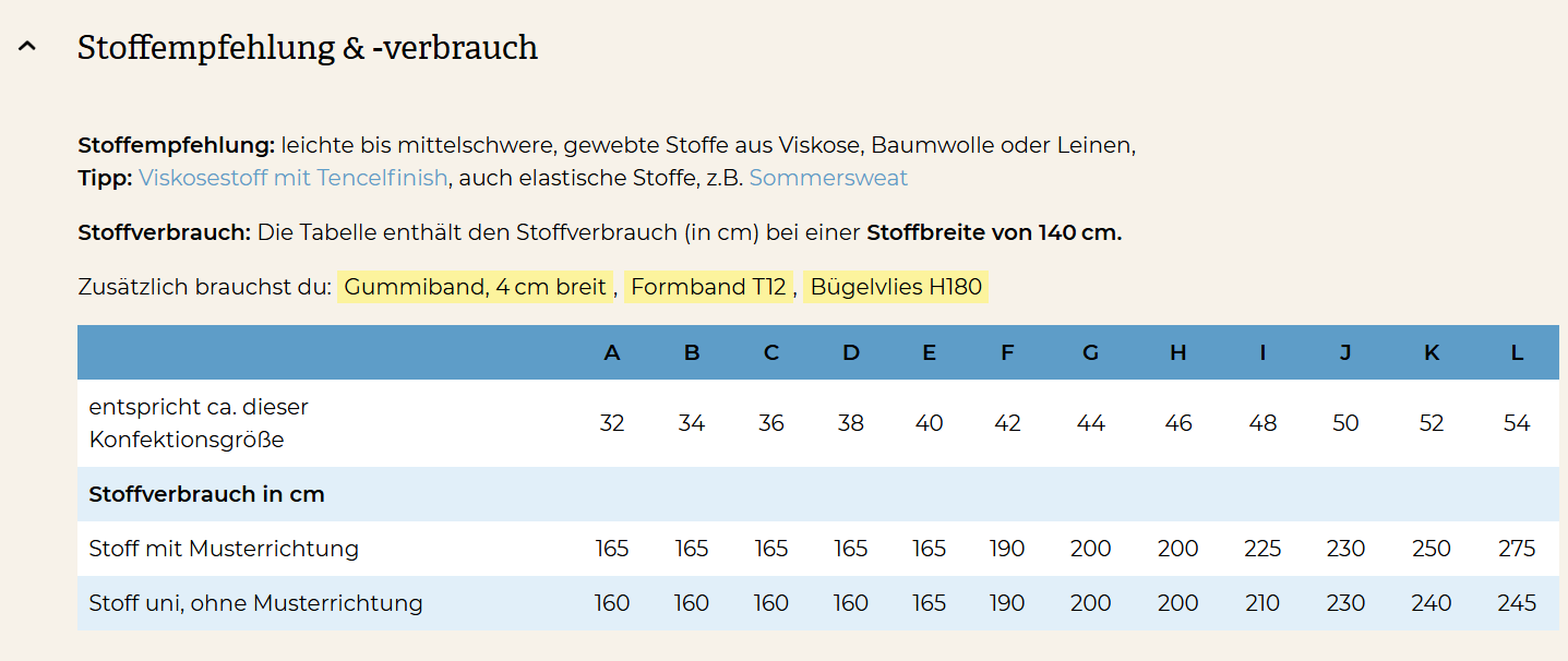 Im Preis enthalten ist das Schnittmuster